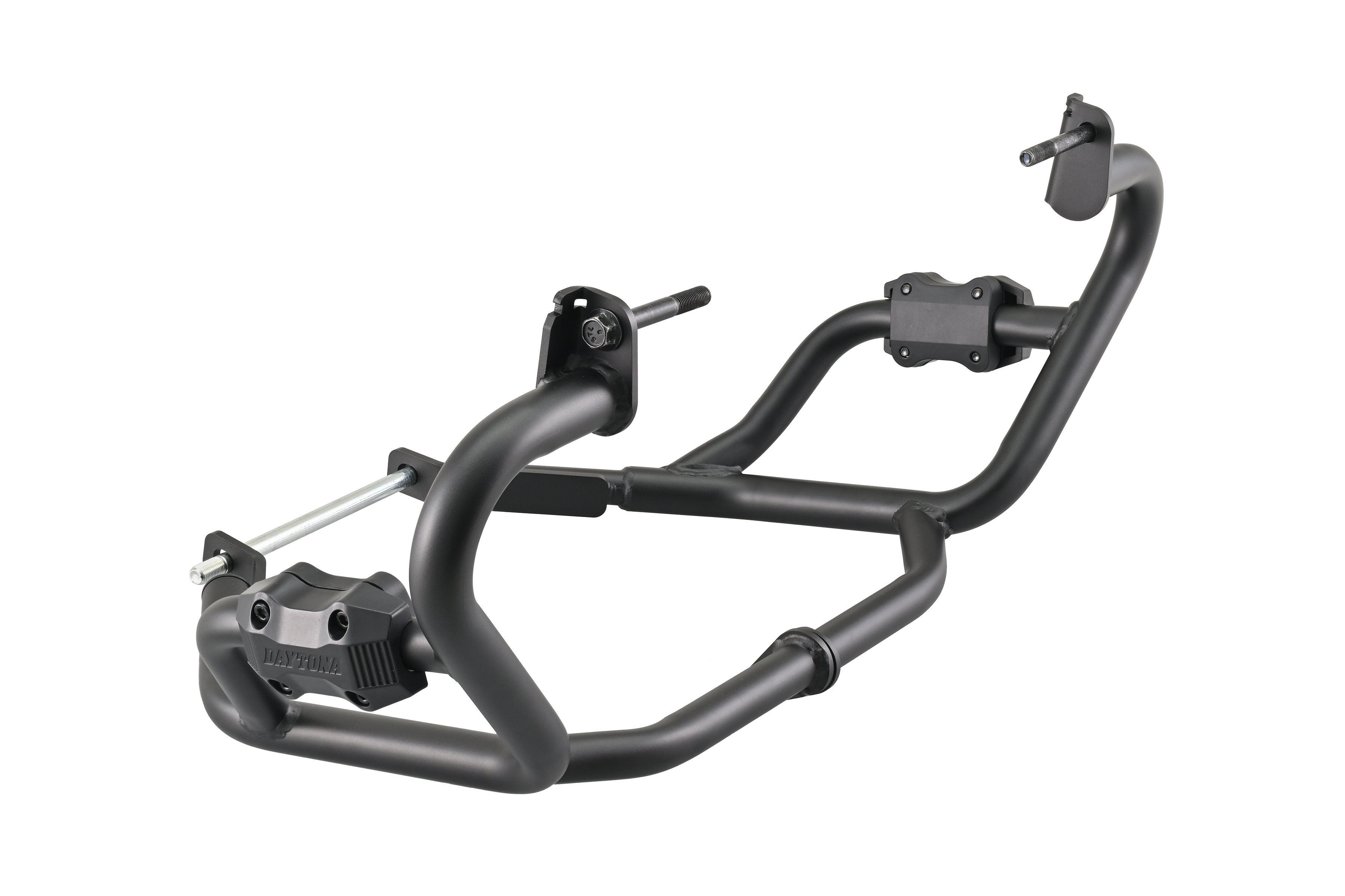 メインパイプは、車両のボリュームに負けないφ28.6の極太パイプで構成。強度の高い左右連結構造により、立ちごけなどの軽度な転倒による車体のダメージを軽減します。装着状態でオイルフィルターの脱着が可能です。フォグランプを装着する際の配線を留めるための切り欠きを設けるなど、細やかな心配りも特長です。樹脂パッド(リダクションスライダー)付属。※当社プレシャスレイLEDフォグランプキット スモール(48495)、W(40329)の同時装着が可能です。