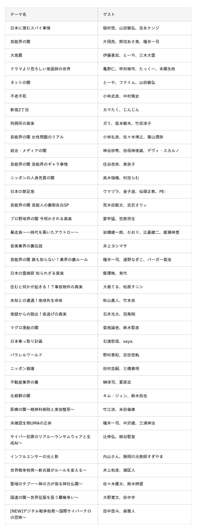 都市伝説――それはもう、誰もが知る「表の話」。でも、まだ表に出ていない“裏話”があるんです。そこには、真実に近づくためのヒントが隠されているかもしれません。Mr.都市伝説・関暁夫がこれまで伝えてきたこと、「そんなの信じられない」と思った人も多いでしょう。でも振り返ってみてください。その言葉、意外と“嘘じゃない”と思いませんか?