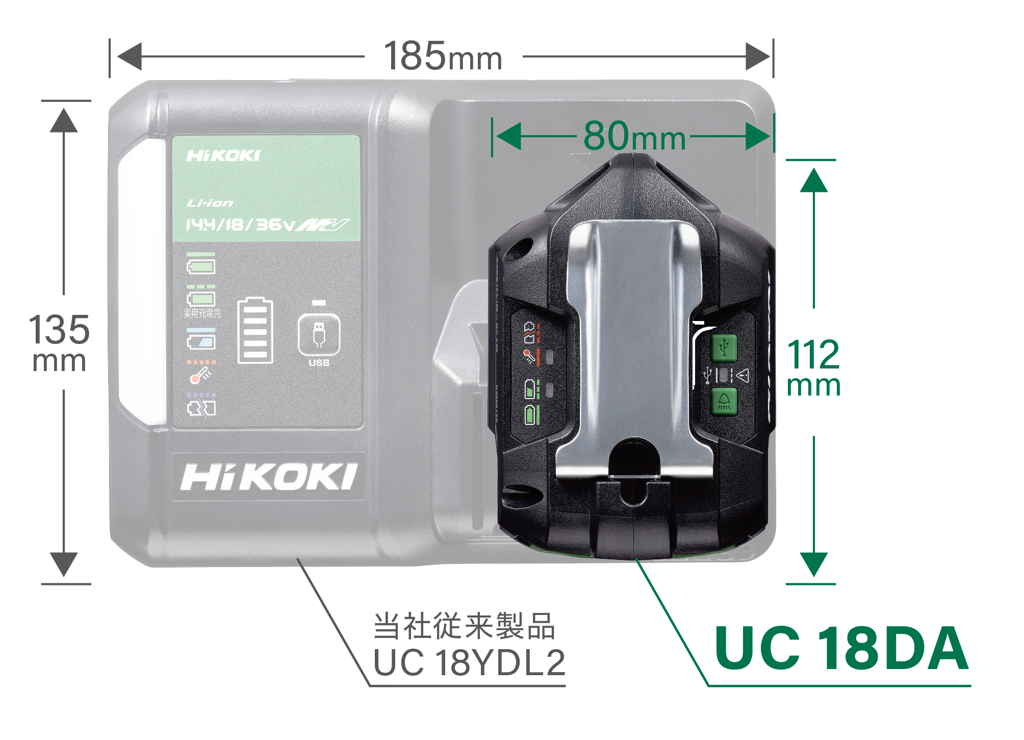 UC18DA:https://www.hikoki-powertools.jp/products/powertools/battery/uc18da/uc18da.html
