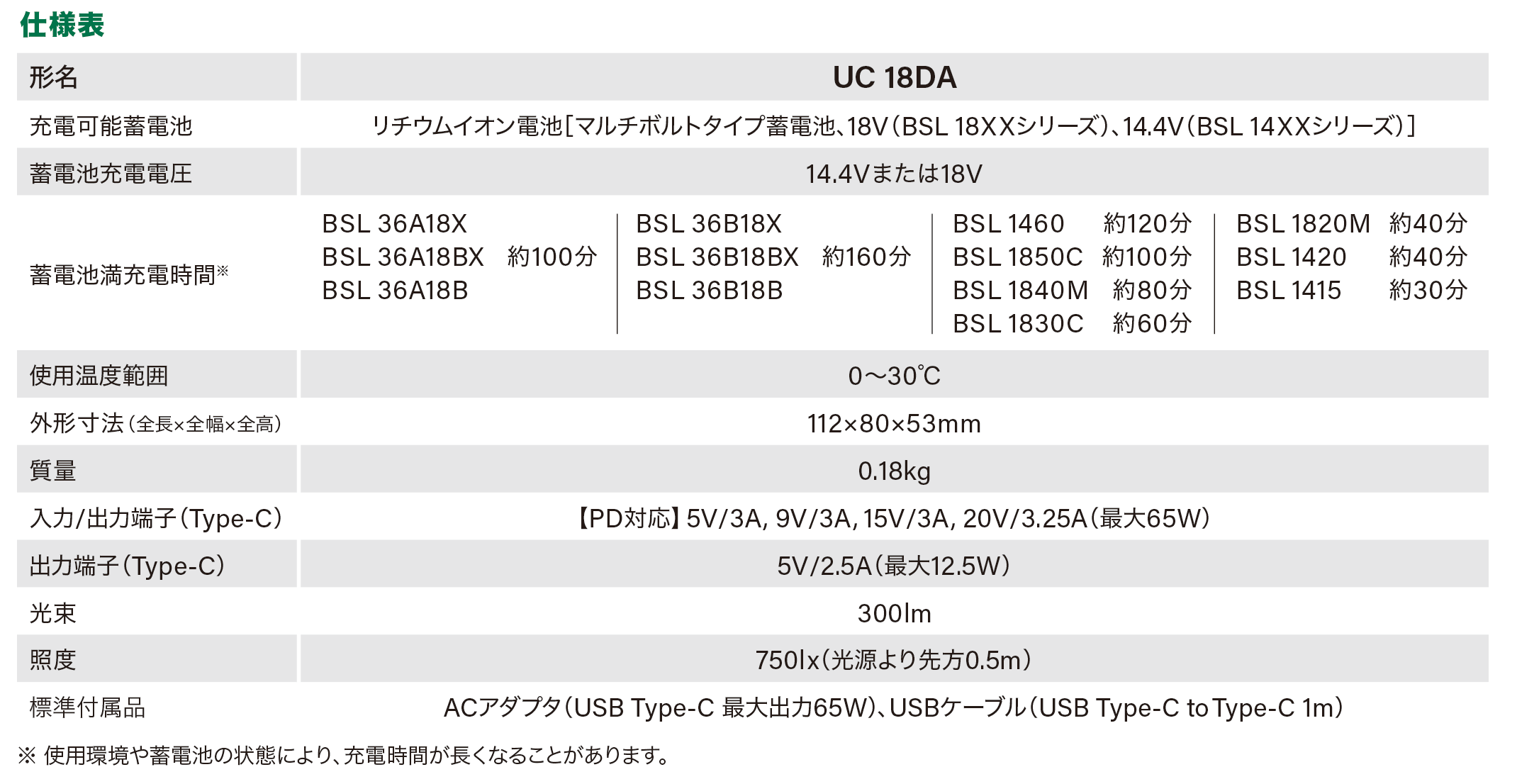 URL :https://www.hikoki-powertools.jp/products/powertools/battery/uc18da/uc18da.html
