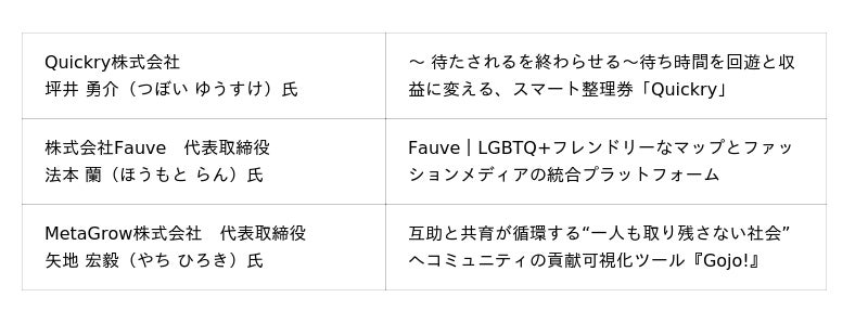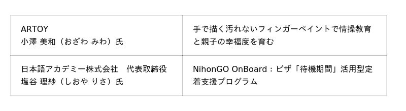 その他受賞者ならびにビジネスプラン名は以下の通りです。(表記は五十音順)