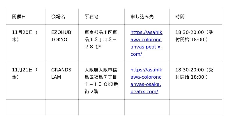 大阪会場URL: https://asahikawa-coloroncanvas-osaka.peatix.com/