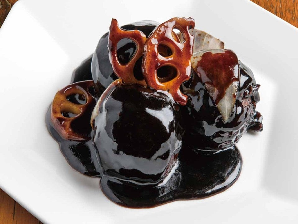 黒黒く艶やかに、甘く、酸っぱく、たっぷりソースを絡めてどうぞ。