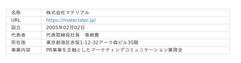 マテリアルは、ストーリーテリングを基軸に、企業やプロダクト価値の向上を目的としたコーポレートおよびマーケティングコミュニケーションを提供するブランドビルディングカンパニーです。 ブランディングやプロモーション企画の全体設計を含むストーリー設計から、コンテンツ企画開発、クリエイティブ、キャスティング、PRエグゼキューション、危機管理、パブリック・アフェアーズ、ロビイング、デジタルマーケティングなどのサービスをワンストップで提供しております。