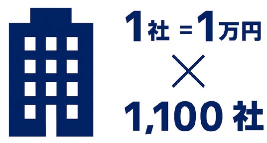 1社受注につき、1万円を日本赤十字社に寄付、1,100万円の支援を目指す