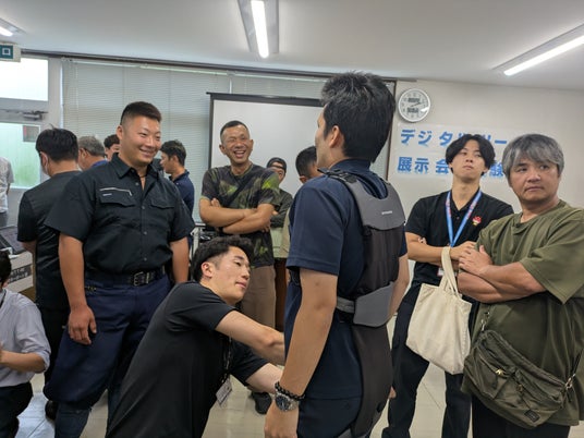 持参した機器一覧体験会では点検ドローンやアシストスーツ類などを実際に体験してもらいました。