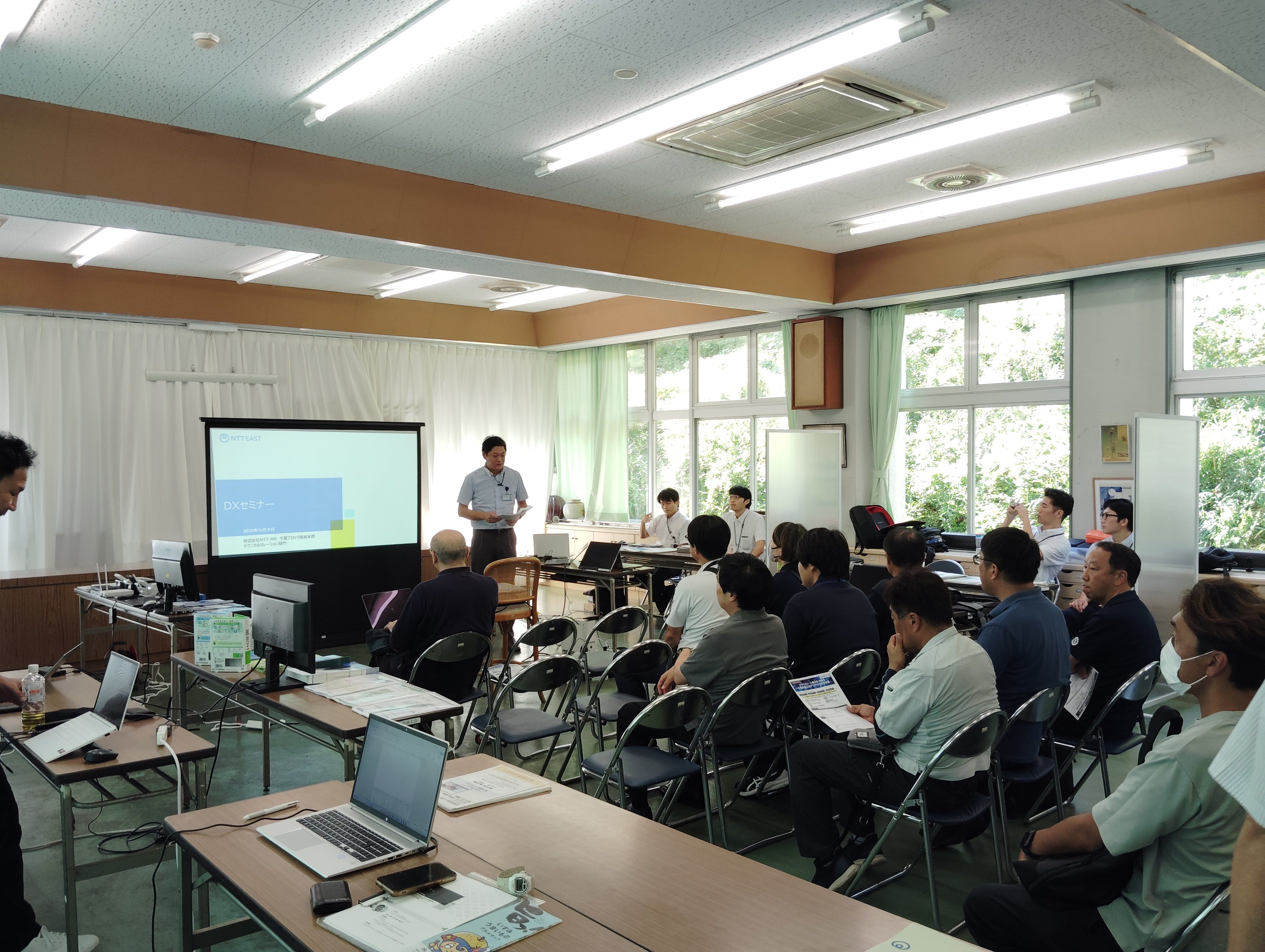 体験会に先立ちDXについてのセミナーを実施しこういった機器を使って何ができるのか、そのコストはどの程度かかるのかについて説明しました。