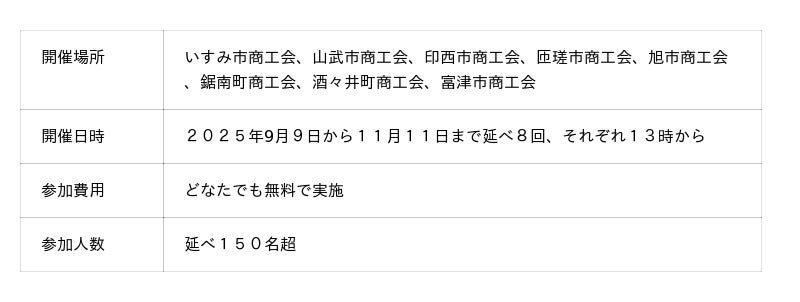 商売に役立つ千葉県商工会デジタル化支援事業が、2025年9月9日から2025年11月11日まで延べ8回開催されました。