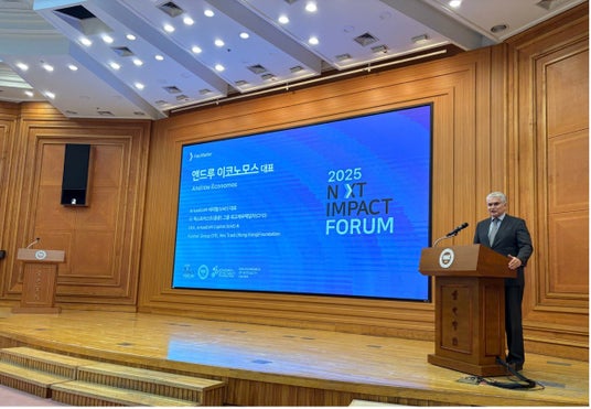 韓国・ソウル - [2025年11月6日] - Arkas EOMグループのCEOであるアンドリュー・エコノモス氏は、ソウルの漢陽大学校で開催された「Next Impact 2025」フォーラムにおいて基調講演を行いました。同氏は、グローバルな投資環境下における「Economics of Mutuality(EOM)」原則の投資・経営への実践方法を詳述するとともに、日本の成長戦略に貢献するため、5億ドルのテクノロジーファンドを日本で立ち上げる計画を発表しました。これは、アジアにおける新しい形のインパクト・ベンチャーキャピタルモデルの台頭を象徴するものです。