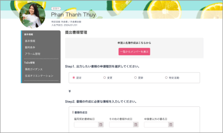 Linkusは、必要な情報を登録しておけば、ボタンを押していくだけで書類生成でき、情報の更新も簡単です。また登録されている従業員ごとの手続きのTo Do管理も自動的に行えます。株式会社韓流村はLinkusの導入により支援管理業務の大幅な工数削減と内製化を実現しています。