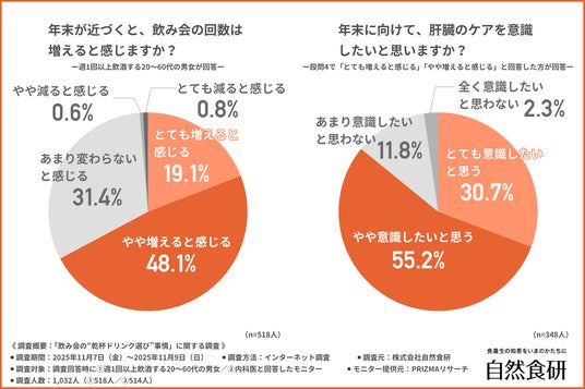 大多数が「意識したい」と回答したことから、年末は飲酒機会が増加することで、肝臓ケアへの意識も高まる傾向があるようです。