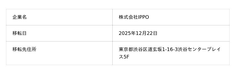 IPPO、本社移転のお知らせ