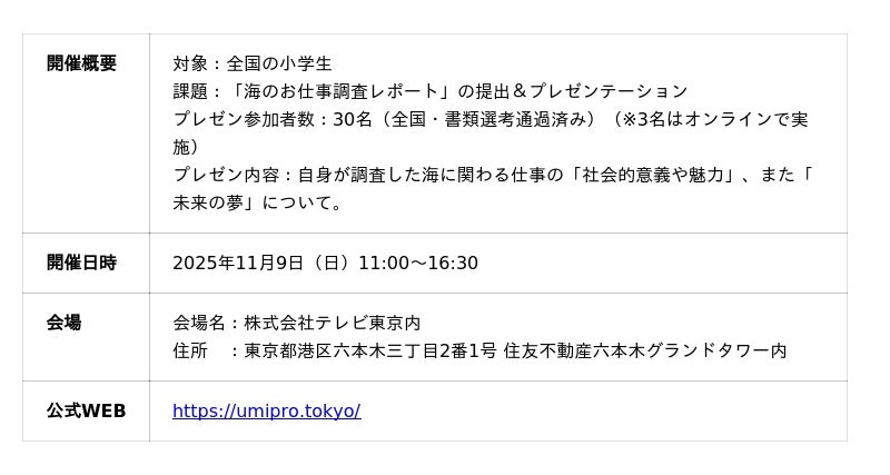 一般社団法人海と日本プロジェクトin東京は、2025年11月9日(日)に全国の小学生を対象とする「海の働く!バナナキッズ 発表会」を開催しました。