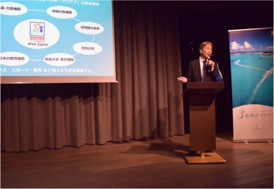 続いて、日本事務局長の萩野隆二より、マリアナ諸島の魅力や渡航関連情報、観光ポイント、今後の観光に向けた取り組みを紹介するプレゼンテーションを実施しました。