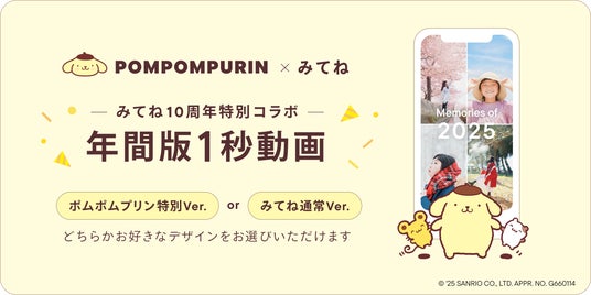 「家族アルバム みてね」「2025年サンリオキャラクター大賞」1位「ポムポムプリン」と「年間版1秒動画」がコラボ!