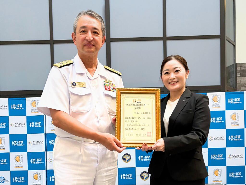 2025年10月11日(土)に、横須賀市内で開催された「横須賀海自カレーリニューアルセレモニー」において、メルキュール横須賀は市内提供店舗代表として出席いたしました。