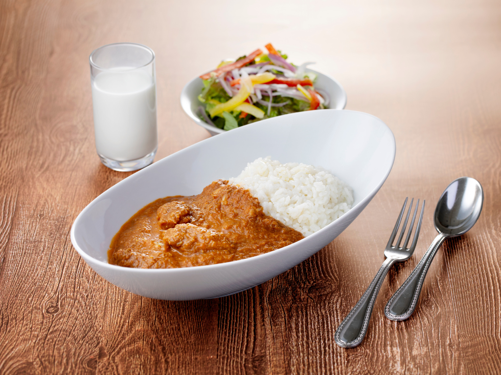 飴色になるまで炒めた玉ねぎとトマトをベースに、スパイスの芳醇な香りを重ね合わせ、シンプルながらも豊かな味わいのチキンカレーに仕上がっております。