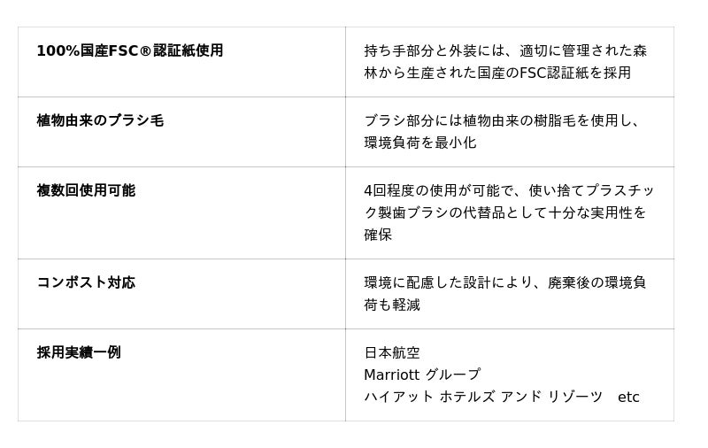 世界初・紙製歯ブラシの特徴