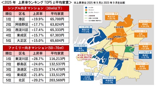 不動産情報サービスのアットホーム株式会社(本社:東京都大田区 代表取締役社長:鶴森 康史 以下、アットホーム)は、大阪市24区の2025年9月の募集家賃を2023年同月と比較し賃貸市場の変化を調査した「大阪市24区の募集家賃ランキング」の調査結果を発表いたします。