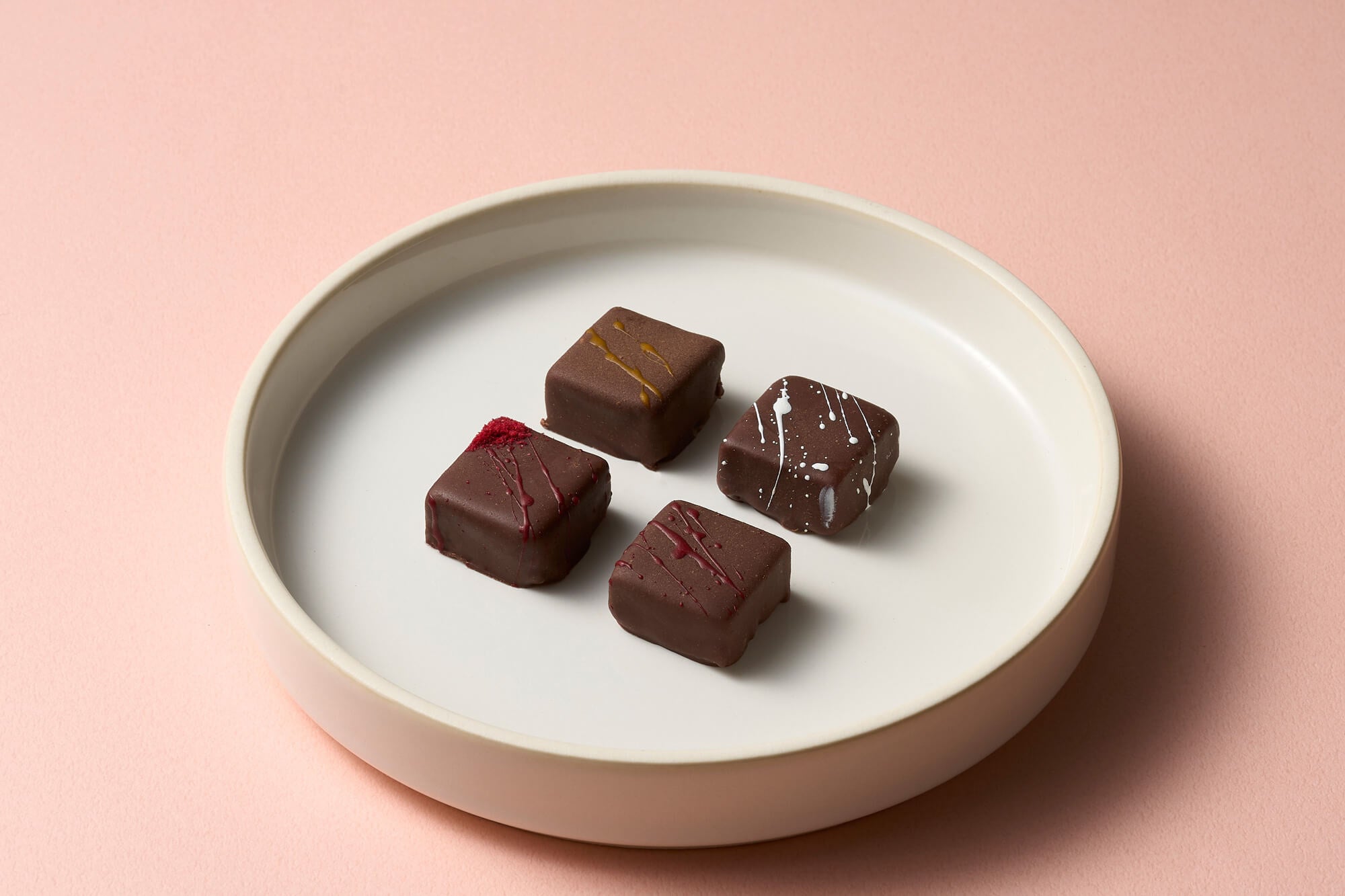 チョコレート職人横山による、意外性のある和素材も用いた個性の光る4種