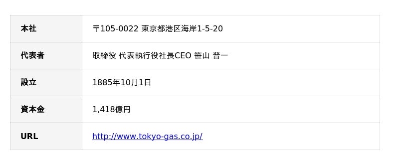 ■東京ガス株式会社について(会社概要)