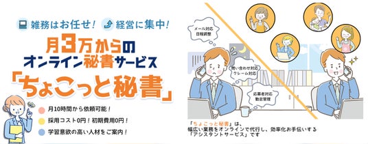 「ちょこっと秘書」は、月額3万円から利用できるオンライン秘書サービスです。