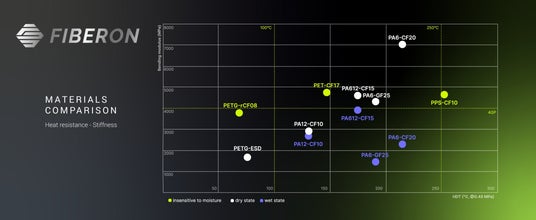 本製品「Fiberon(TM) PPS-CF10」は、PPS基材にカーボンファイバーを10%前後配合した複合材料で、優れた耐薬品性・耐腐食性、耐熱(250 ℃以上レンジ)・難燃(UL 94 V-0相当)・低吸湿・高寸法安定性・高強度・高剛性という特徴を備え、まさに“困難用途”への3Dプリント活用を可能にします。