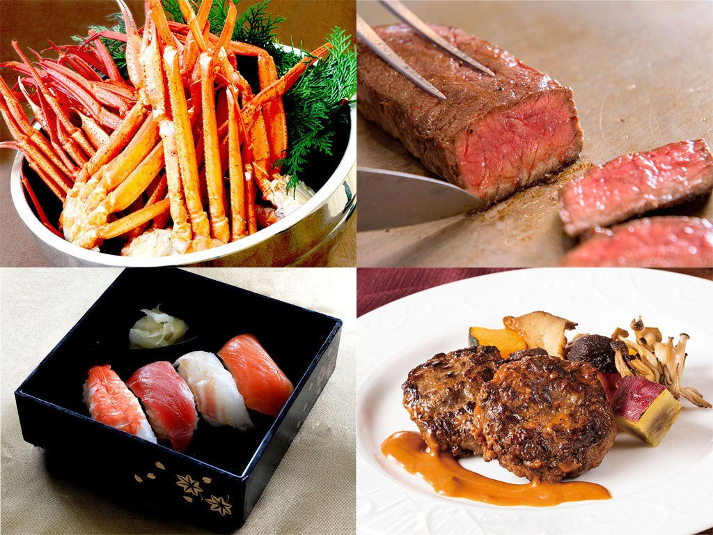日本三大和牛のひとつで「肉の芸術品」とも呼ばれる松阪牛をはじめ、蟹や握り寿司が食べ放題。
