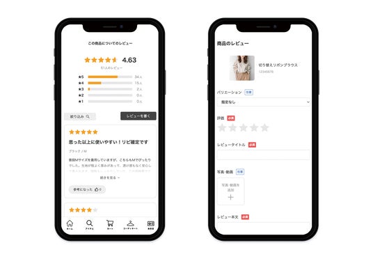 レビュー機能により、ユーザーの商品理解と購買意欲を促進します。