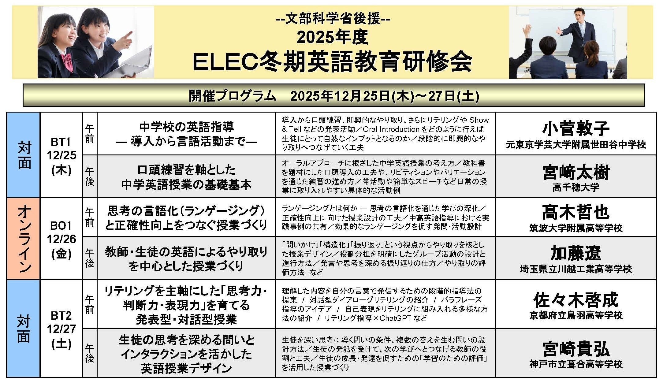 ◆ 文部科学省後援 2025年度ELEC冬期英語教育研修会 ◆