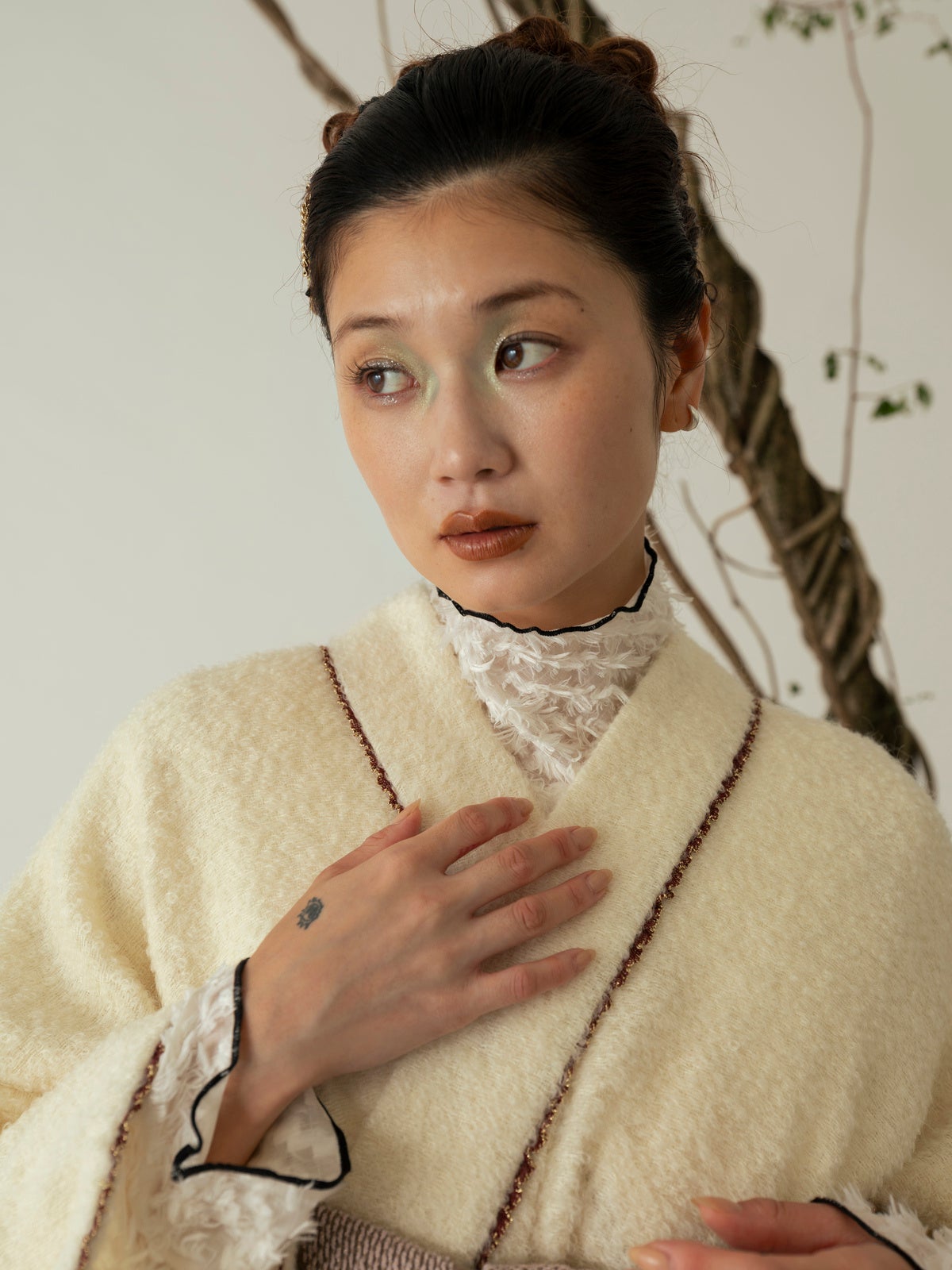 手しごとのぬくもりが感じられる上質なツイード生地をまとい、いつもより少し特別な時間をお楽しみください。
