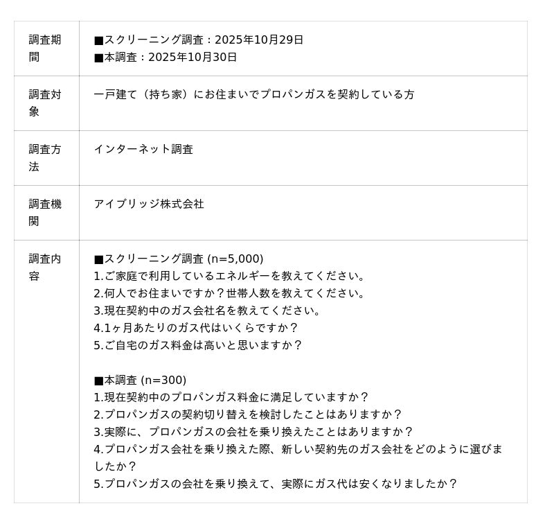 「プロパンガス料金が高い」と感じており、プロパンガスの契約切り替えを検討されている方の判断材料のひとつとして本調査レポートをご活用いただければ幸いです。