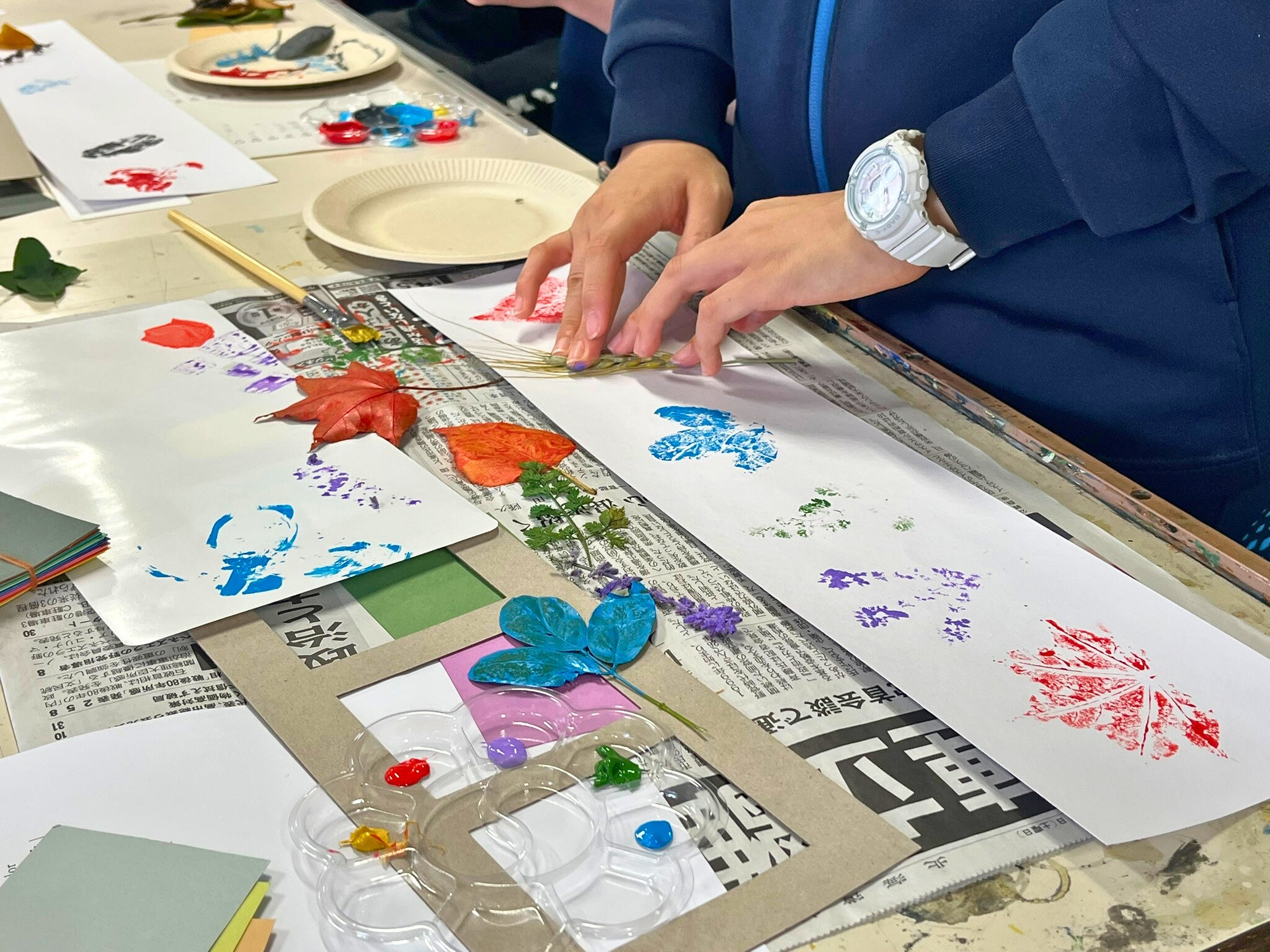 本ワークショップには、市立札幌藻岩高等学校の美術部の生徒やデザイン系の進学を目指す生徒など12名が参加し、「札幌の都市の彩り」や「四季の美しさ」をテーマに、札幌の植物や草木を用いた「ボタニカルペイントアート」を制作しました。