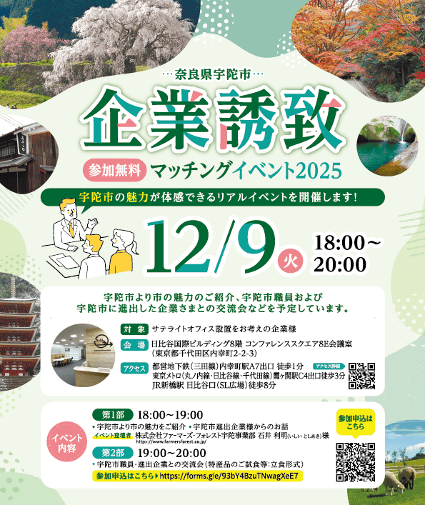 - イベント名: 奈良県宇陀市 企業誘致 マッチングイベント2025(交流会)