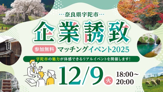 全国でエリアマーケティング事業を展開する株式会社キョウエイアドインターナショナル(本社:東京都千代田区 代表取締役:廣瀬勝巳 以下「キョウエイアド」)は、自治体支援事業「地方創生プロジェクト」において奈良県宇陀市より受託している「令和7年度宇陀市企業誘致促進業務」の一環で、宇陀市へのサテライトオフィス設置など進出に関心のある企業と宇陀市とのマッチングイベント「奈良県宇陀市 企業誘致 マッチングイベント2025」を、2025年12月9日(火)に東京・日比谷にて開催いたします。