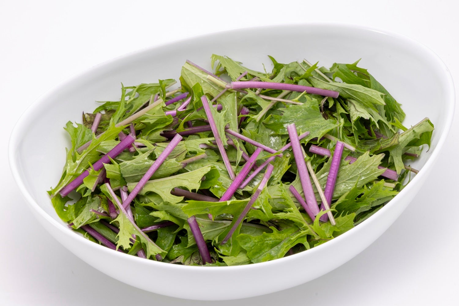 軸が赤紫色の赤水菜は、シャキシャキとした食感で色々なドレッシングとの相性抜群。※国産野菜を使用