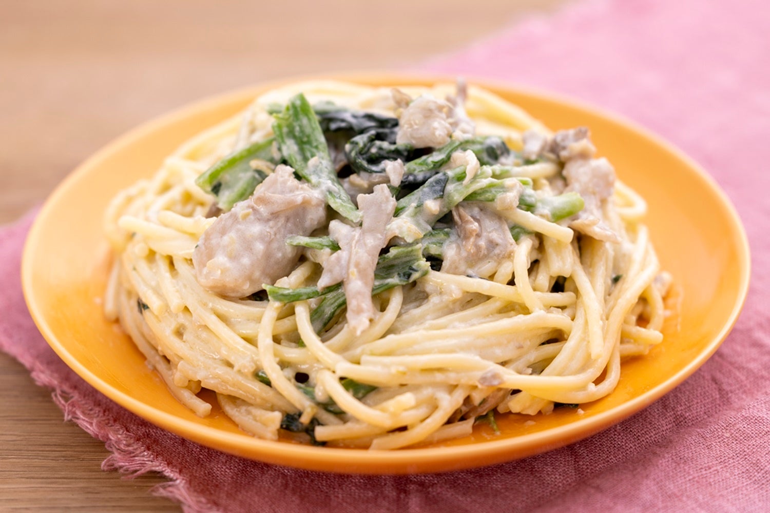 ●舞茸とほうれん草のタプナードパスタ