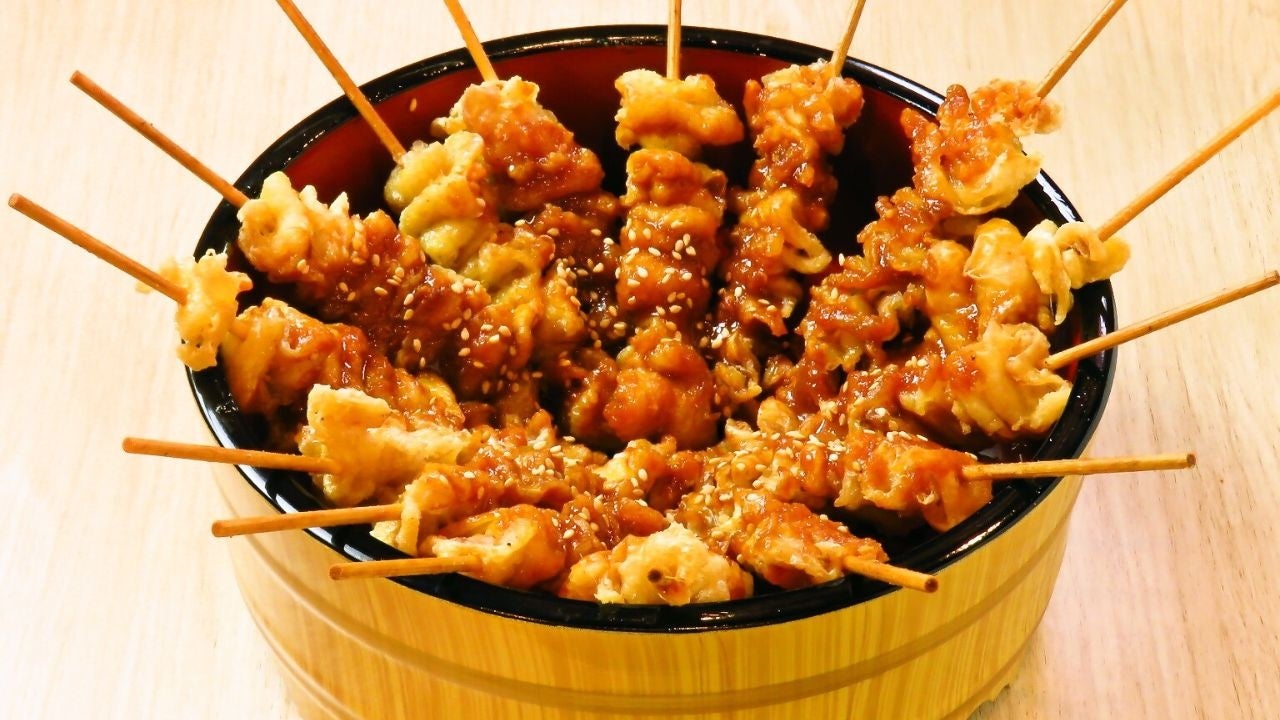 テルマエ串 1本70円(税抜) 20本以上で風呂桶で提供