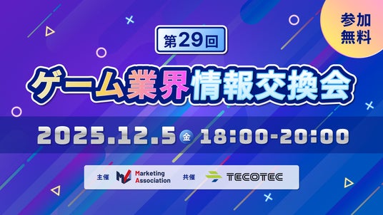 ゲームサポート代行サービスを提供しているマーケティングアソシエーション株式会社(本社:東京都台東区 代表取締役:中園広和、以下当社)は、2025年12月5日(金)に、交流会「第29回 ゲーム業界情報交換会」を、株式会社テコテックと共催いたします。