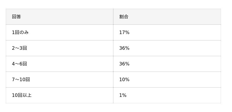 ケミカルピーリングの施術回数については、「2~6回」と答えた人が約7割でした。施術を重ねることで効果が高まるのがケミカルピーリングの特徴で、重度のニキビなど肌の状態によっては、10回以上の施術が必要となる場合もあります。