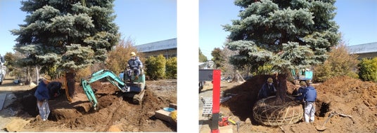 ▲「リビオ光が丘ガーデンズ」の開発敷地から一時移植する樹木(プンゲンストウヒ)の作業状況
