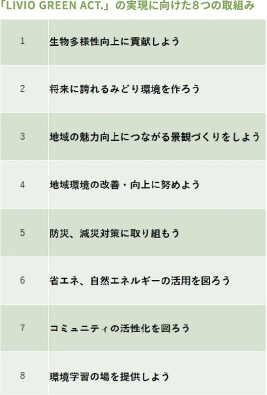 「リビオ」は、緑の持つ効果や機能が生物多様性を育み、持続可能な社会へ導くためのランドスケープのあり方を基準化した独自の緑のガイドラインを定めています。