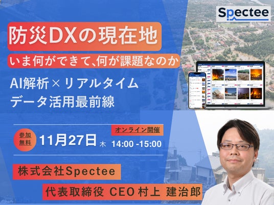 「防災DXの現在地~いま何ができて、何が課題なのか~」防災DXの最前線を徹底解説!Specteeが11月27日(木)にセミナー開催