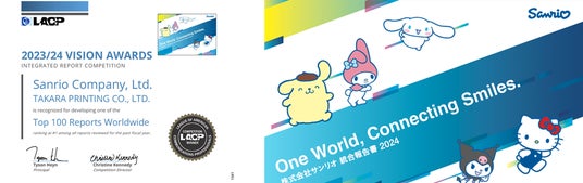 株式会社サンリオ(本社:東京都品川区、社長:辻 朋邦、以下サンリオ)は、米国の2大レポートコンペティションの1つである「2023/24 Vision Awards」の統合報告書部門において、「株式会社サンリオ 統合報告書2024」が世界ランキング1位を獲得いたしました。