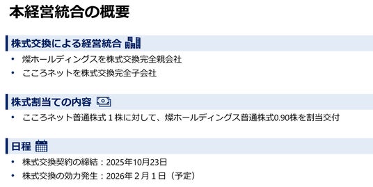 また、こころネット様と当社は、両社とも上場企業であり、ガバナンスが効いた会社経営により、コンプライアンス遵守の下で事業が行われており、両社の経営統合により、より一層、安心と信頼のサービス提供に努めてまいります。
