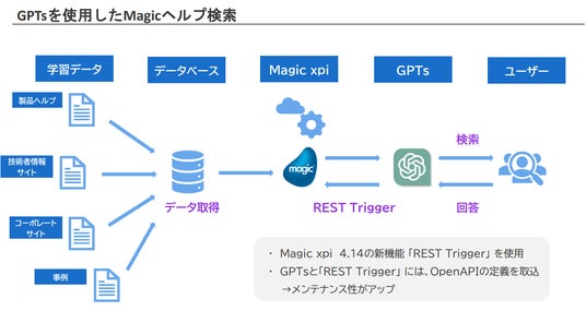 ChatGPTとの連携には「Magic xpi」を活用し、Magic製品の技術情報をスムーズにAIへ提供。Magic xpiの柔軟なデータ連携機能により、シームレスな情報取得を実現しています。