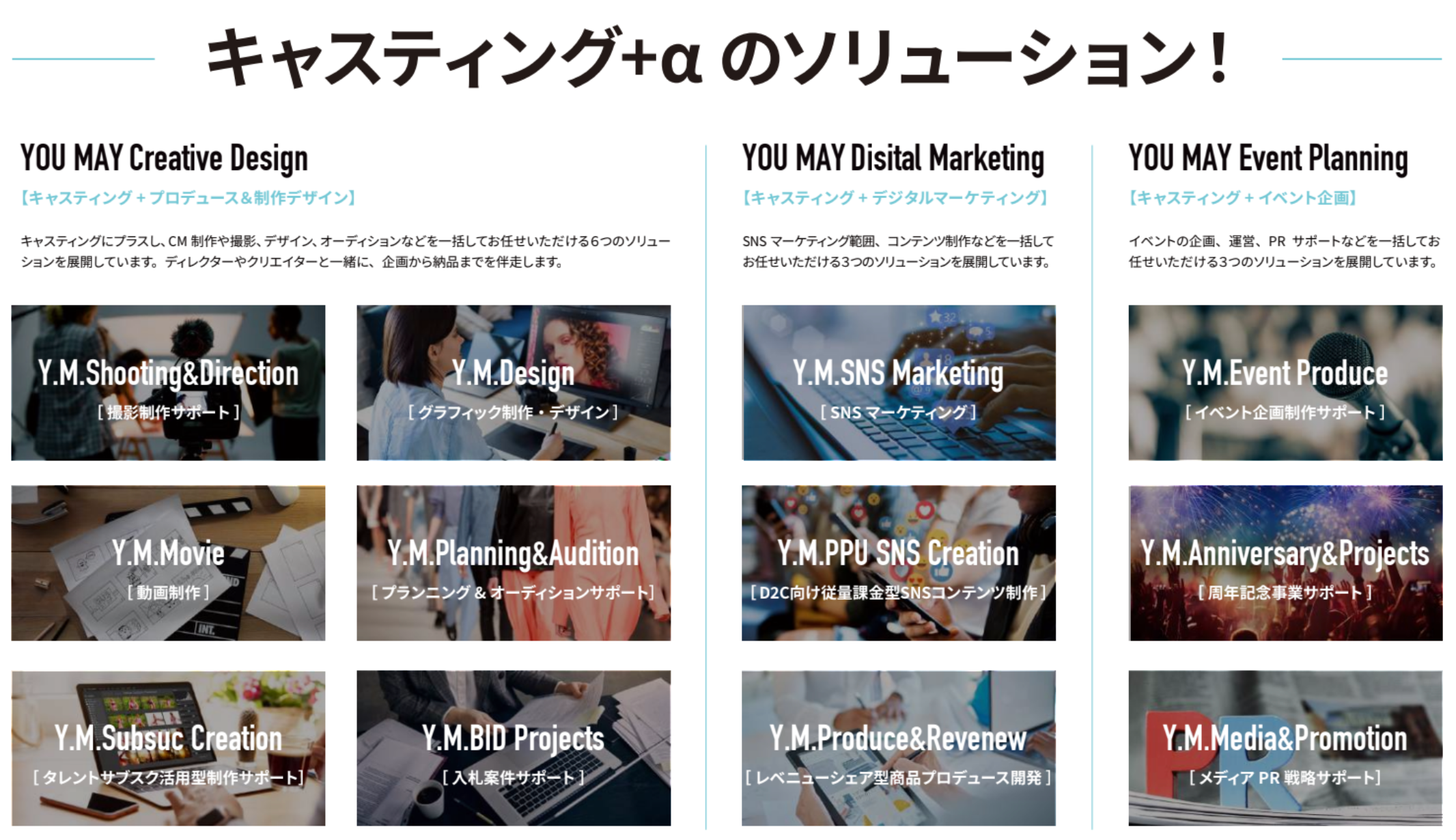 ▲YOU MAY Castingが提供する12のソリューションサービス