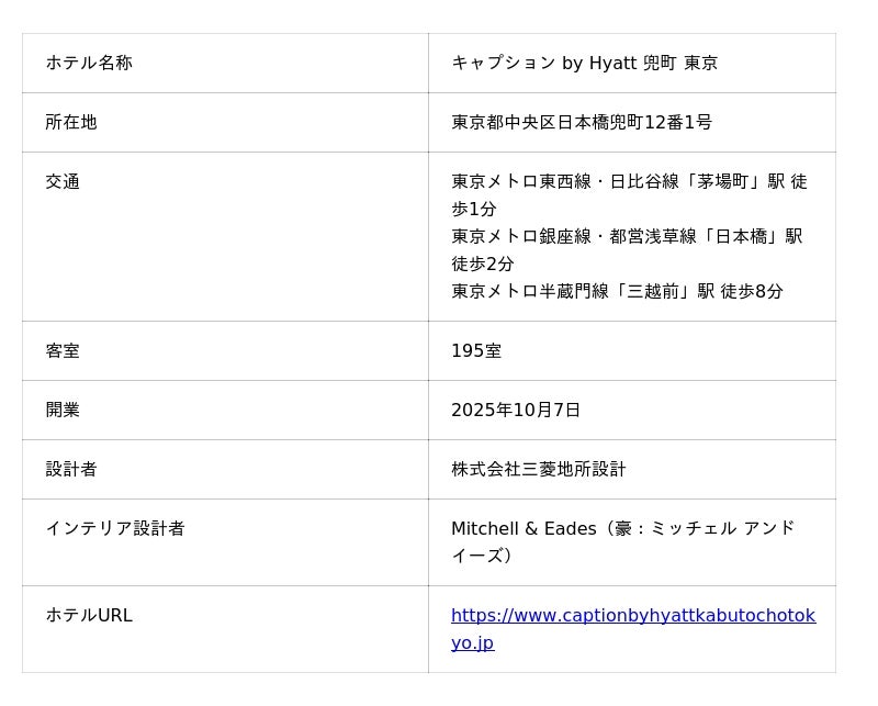 【公式サイト】https://www.captionbyhyattkabutochotokyo.jp