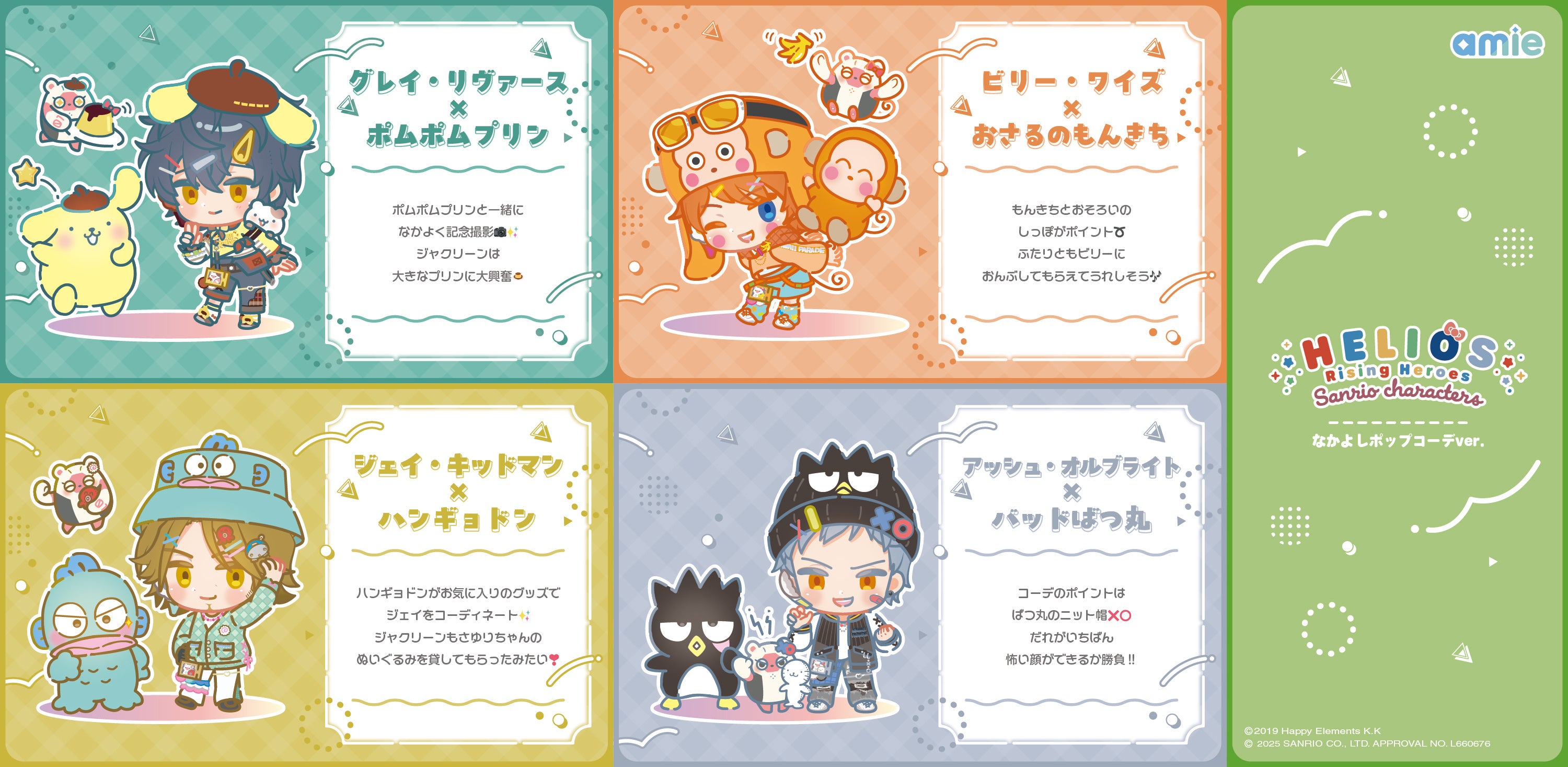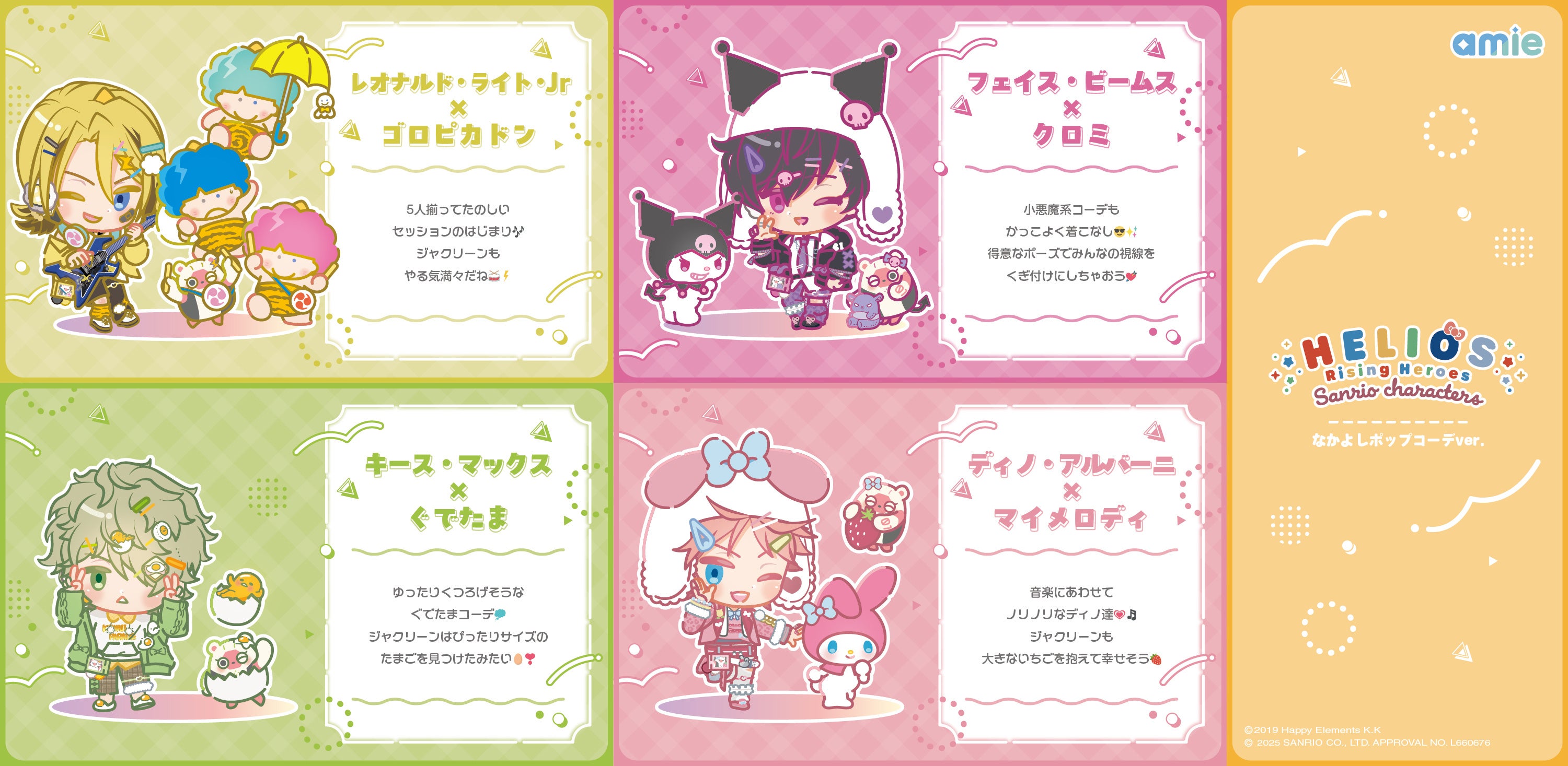 『HELIOS Rising Heroes×サンリオキャラクターズ』第三弾!amie描き起こしミニキャラクターデザインを使用した商品が続々登場。