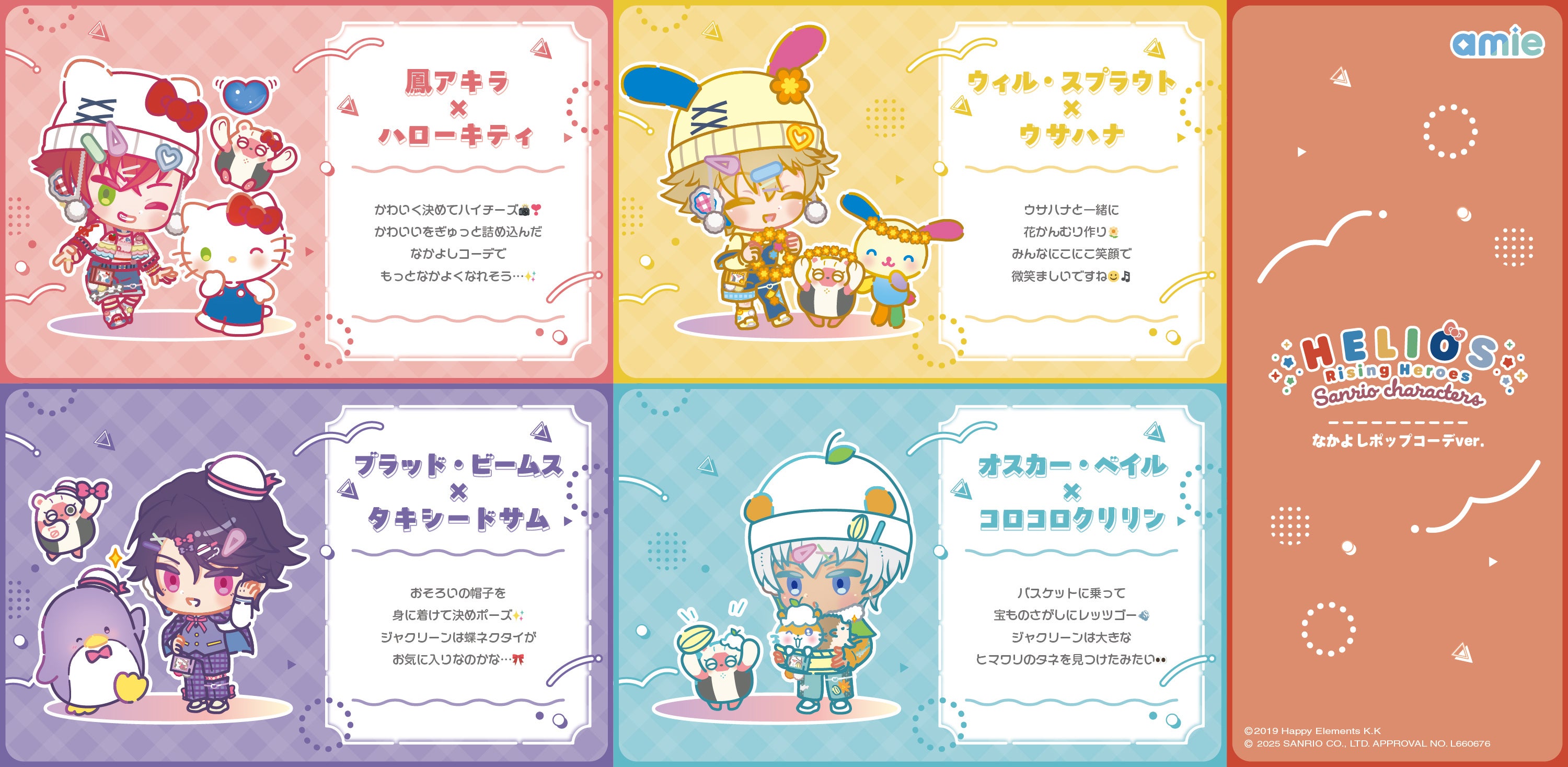 『HELIOS Rising Heroes×サンリオキャラクターズ』amie描き起こしミニキャラクターデザインを使用したコレクションカードが登場!